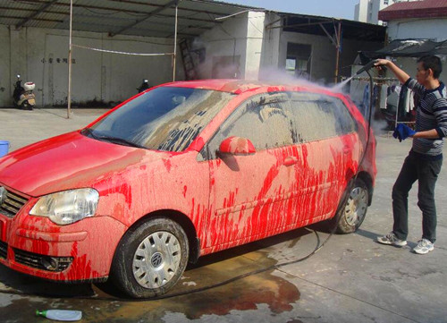 (2)高壓水槍洗車:高壓水槍的水壓十分的大,對(duì)車漆的損傷非常的大,并且這種洗車方式也非常的浪費(fèi)水資源,在我們的很多地方都明令禁止使用高壓水槍開(kāi)設(shè)洗車店。