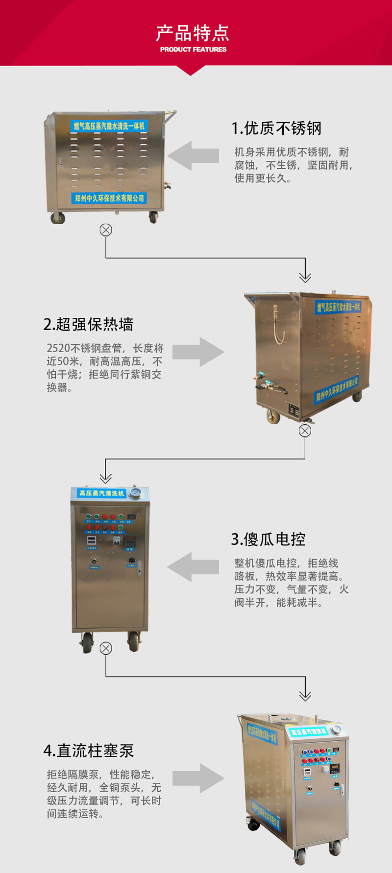 ,上門洗車機’等環(huán)保設(shè)備,產(chǎn)品出蒸汽快速,采用全不銹鋼材質(zhì)制作,可以時間不間斷連續(xù)工作,安全、方便、快速,并且具有消毒殺菌的效果,適用與不同行業(yè)和各種環(huán)境、物品的清潔。